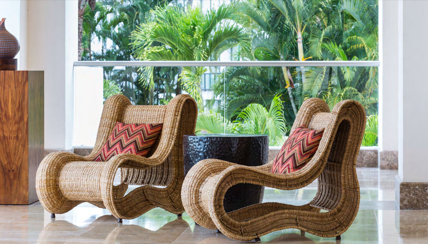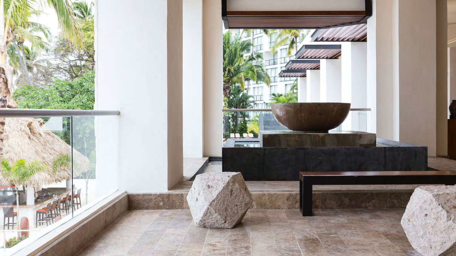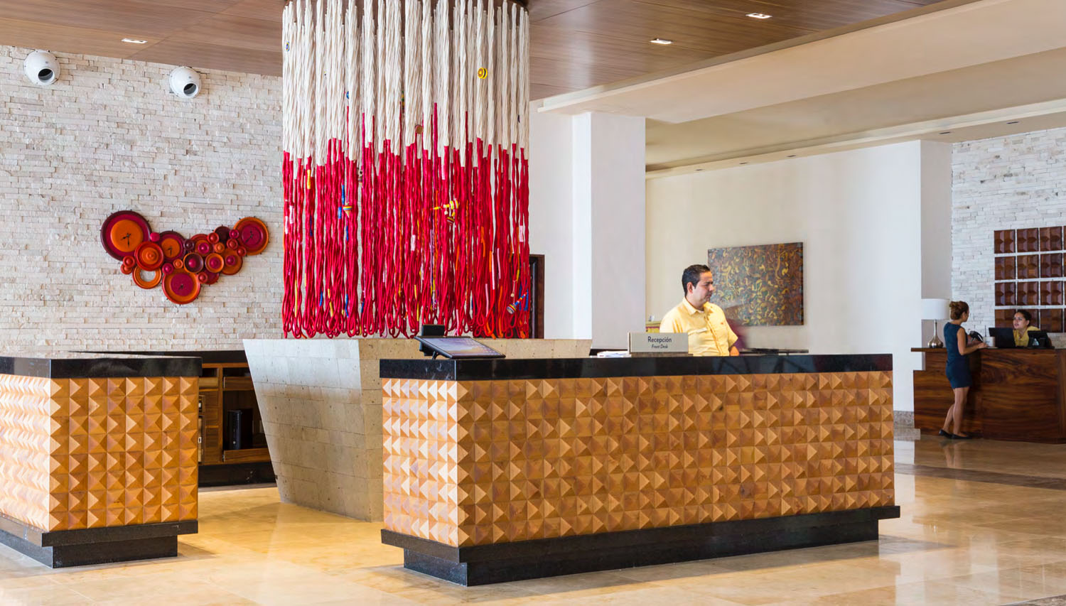 MaJestuosas maderas, piedras, texturas, colores y todo el arte mexicano se expresa en la escenia de Hyatt Ziva Puerto Vallarta.
